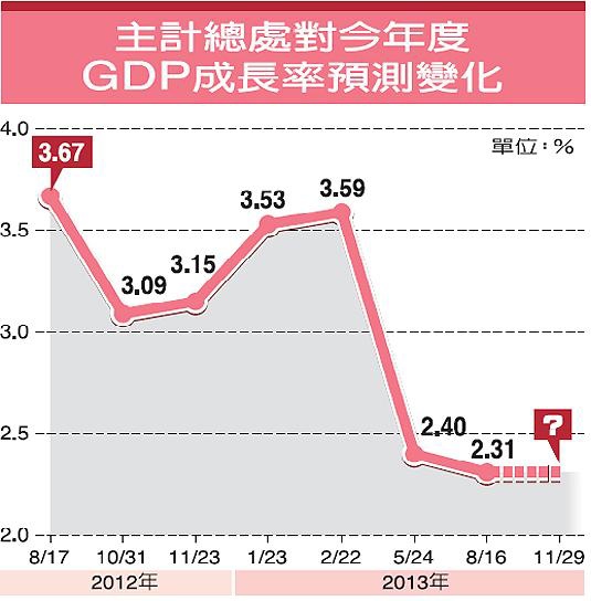 今年GDP成長率預測已連續兩度下修,行政院主計總處本月廿九日將公布最新預測;由於出口、民間投資與消費表現不佳,主計長石素梅昨天(11/13)表示,GDP成長率預估將第三度下修,想保二要「很拚啦。」